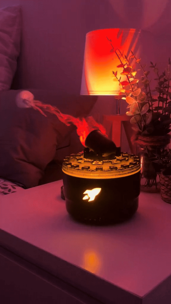 Este humidificador destaca no solo por su tecnología, sino por su belleza visual. Su efecto volcán y luz tenue lo convierten en el aliado perfecto para tu hogar.